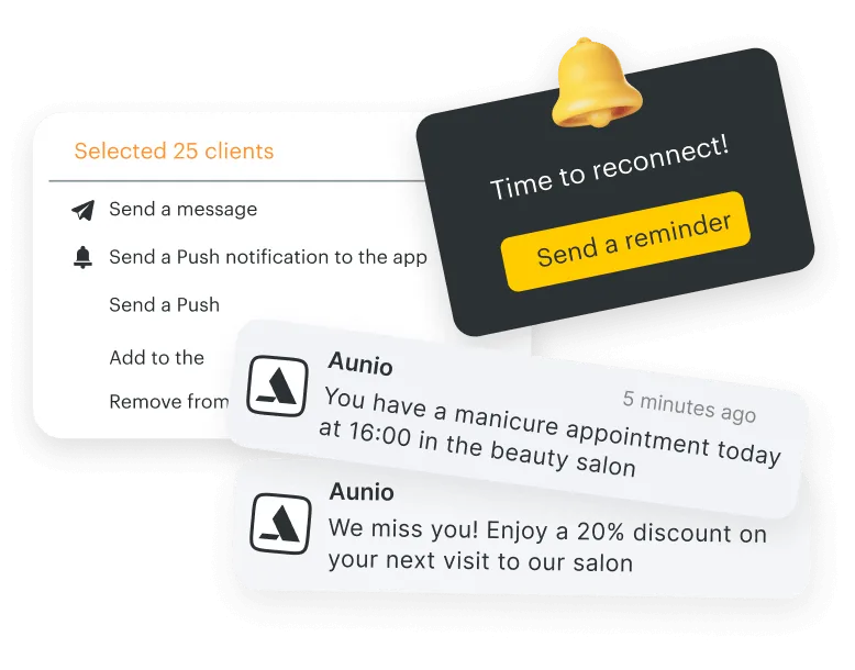 Your clients receive push notifications about appointments and discounts directly on their devices, keeping them informed and engaged with your services.