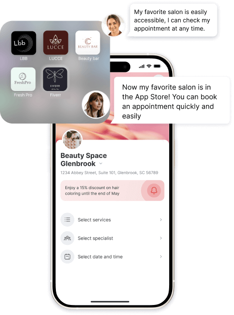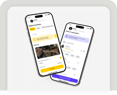 Customize your salon’s app and booking page, making them available on the App Store or Google Play, in just 30 minutes.
