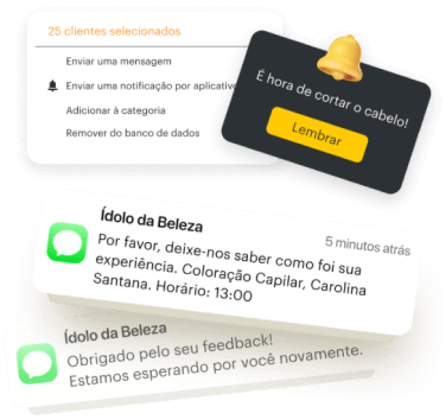 Lembretes de agendamento e solicitação de feedback por notificações via SMS e WhatsApp