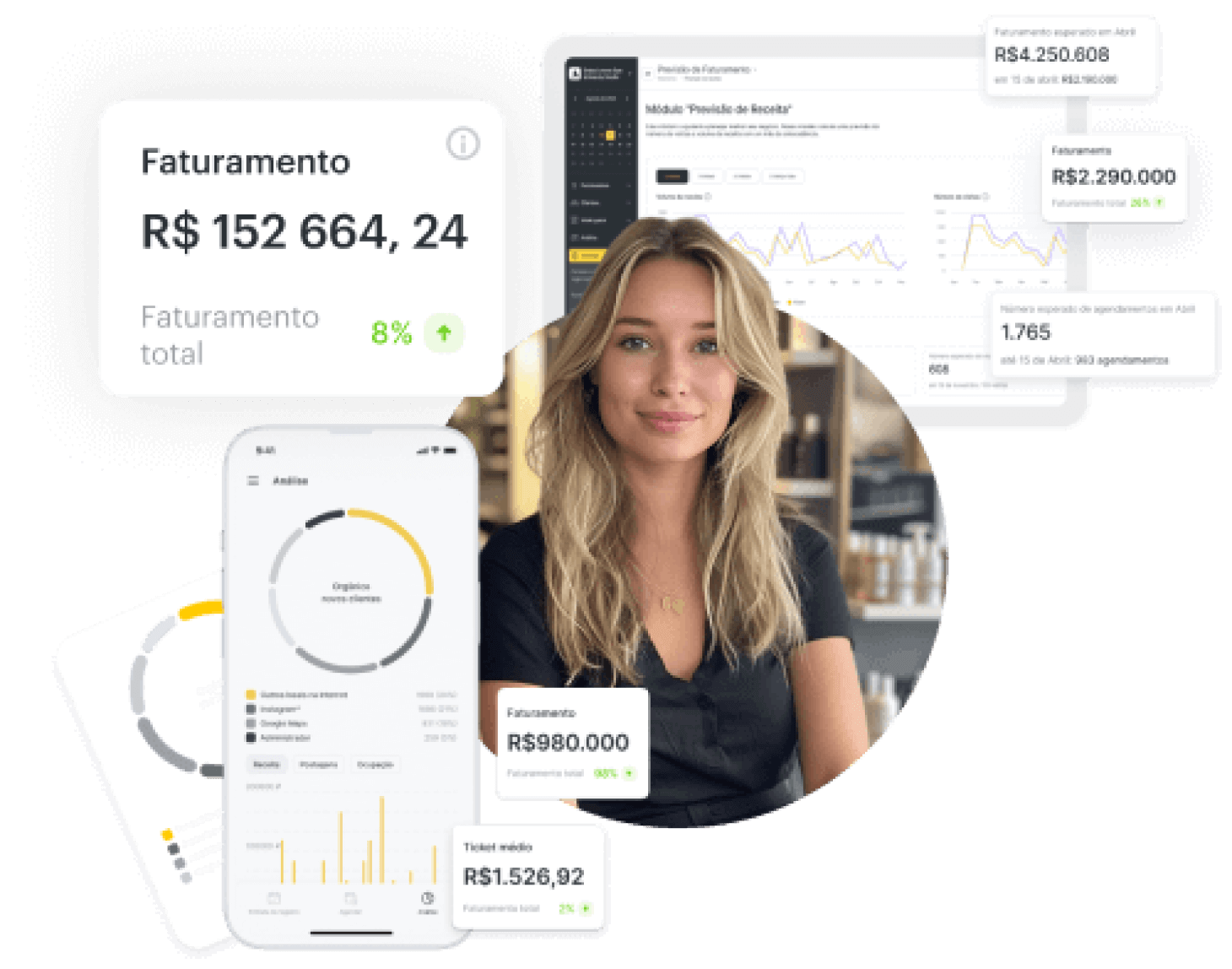 Gerenciar os preços de todas as filiais do seu salão em um único lugar e mapear todas as despesas do seu negócio.